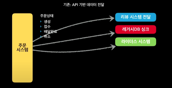 예를 들어 리뷰 시스템은 리뷰를 작성해 달라는 푸쉬 알림을 위해 주문 완료 정보가 필요합니다.