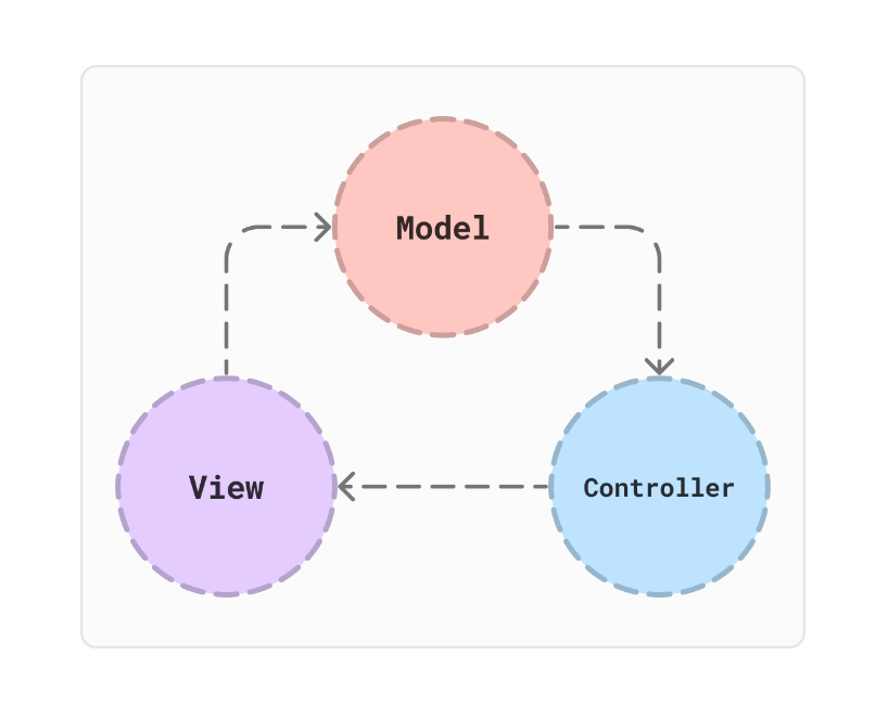 MVC에서 모델은 애플리케이션의 정보(데이터)를 나타내며, 뷰는 텍스트, 체크박스 항목 등과 같은 사용자 인터페이스 요소를 나타내고, 컨트롤러는 데이터와 비즈니스 로직 사이의 상호동작을 관리한다.